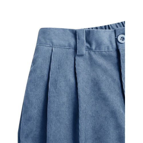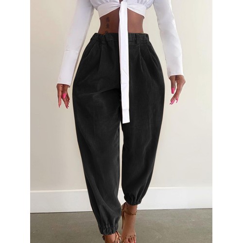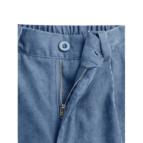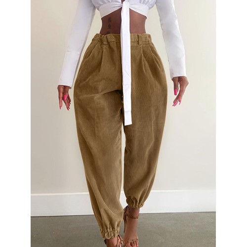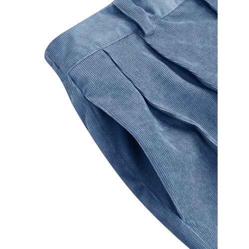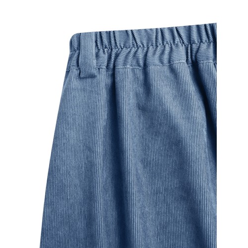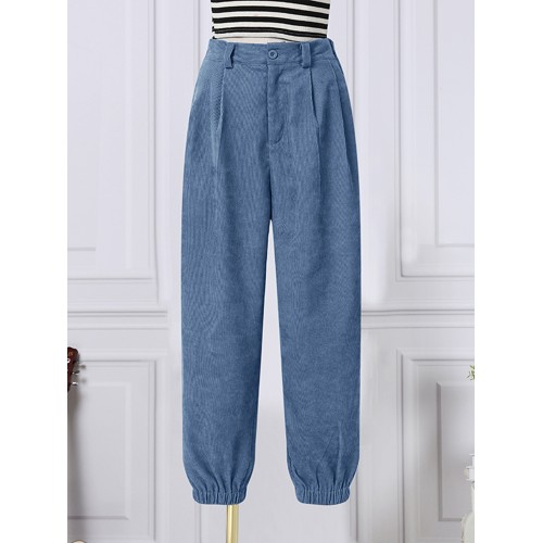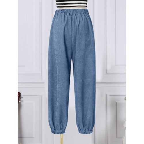 Women Corduroy Loose Solid Color Side Pockets Zipper Buttons Maxi Length Pants