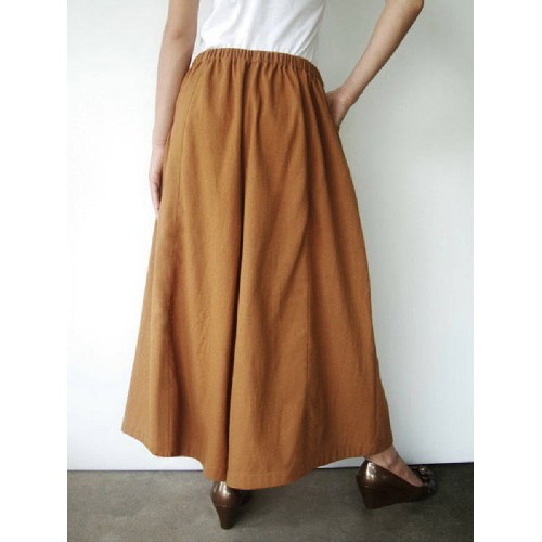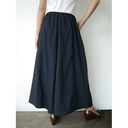 Women Cotton Solid Color Side Pockets Front Fork Wide Leg Pants