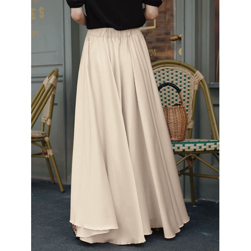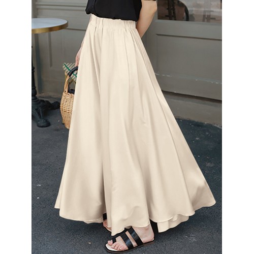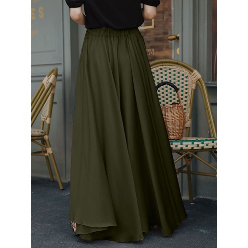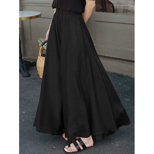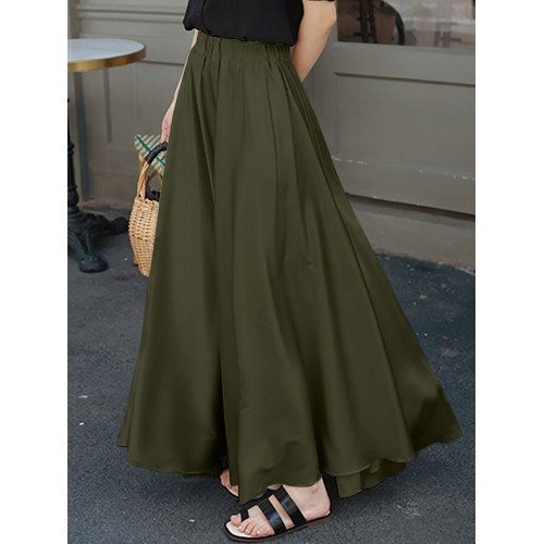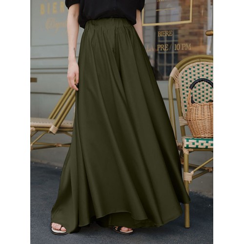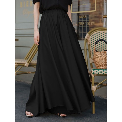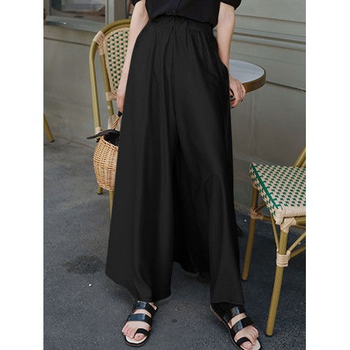 Women Solid Color Loose Casual Elastic Waist Wide Leg Pants With Pocket