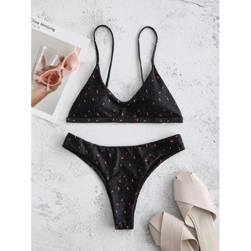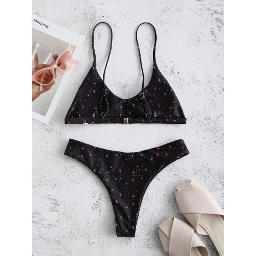 Black Hot Micro Bikini Printed Thong Swimsuits For Womens