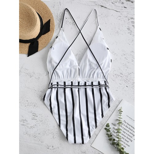 Plunge V Neck Swimwear Cross Criss Backless String One Pieces