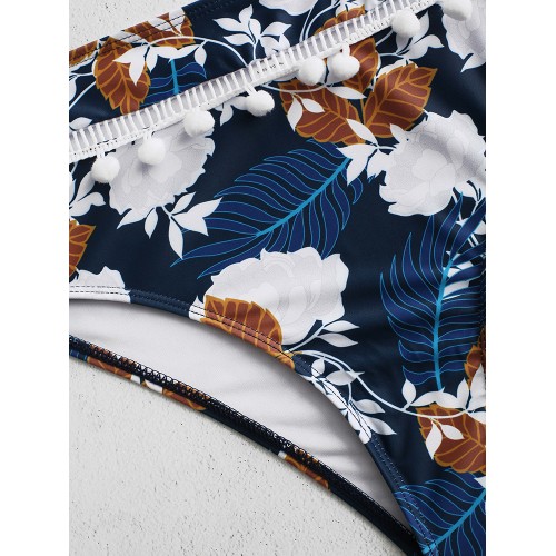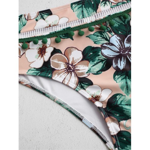 Flora Printed High Waisted Back Closure Backless Bikini Swimsuits
