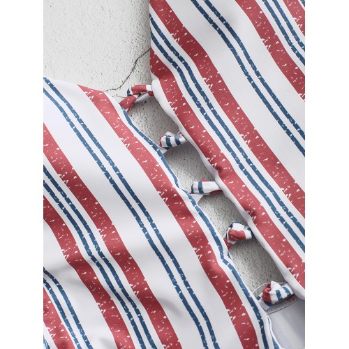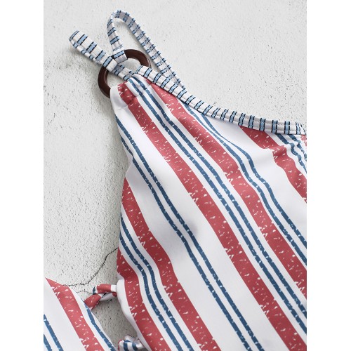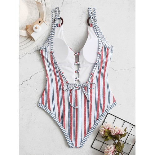 Spaghetti Straps Stripe Print Deep Backless Hot Swimwear