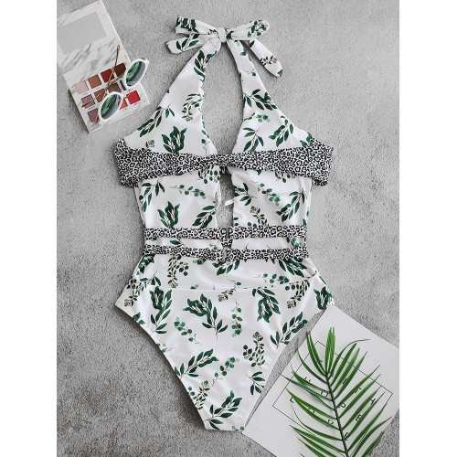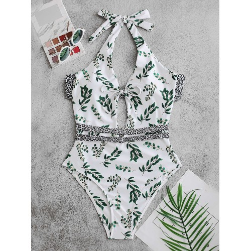 Flora Print Criss Cross Lace up Backless Swimwear For Ladies