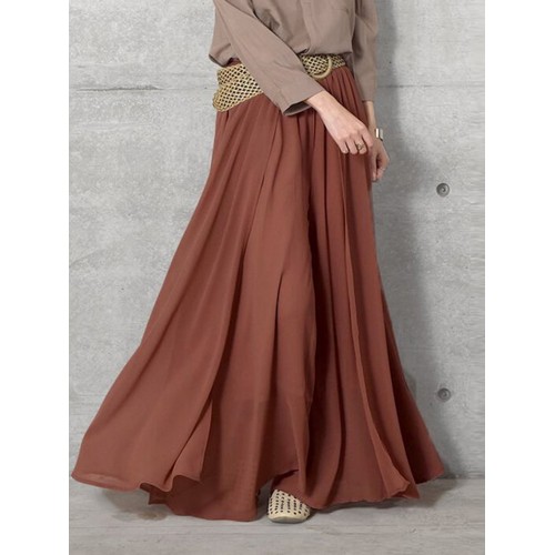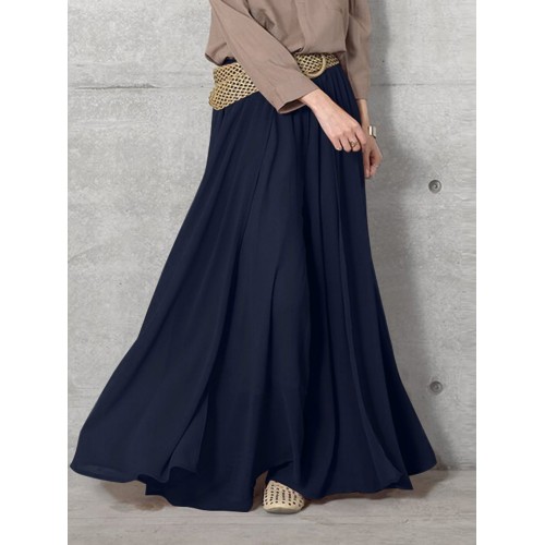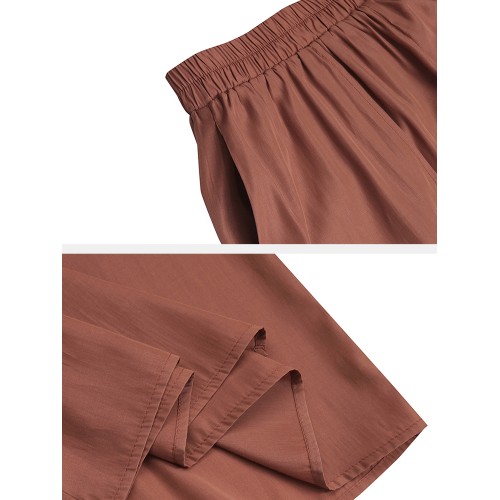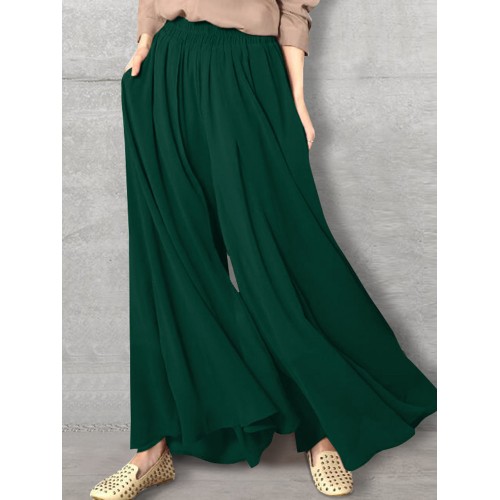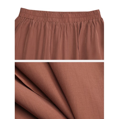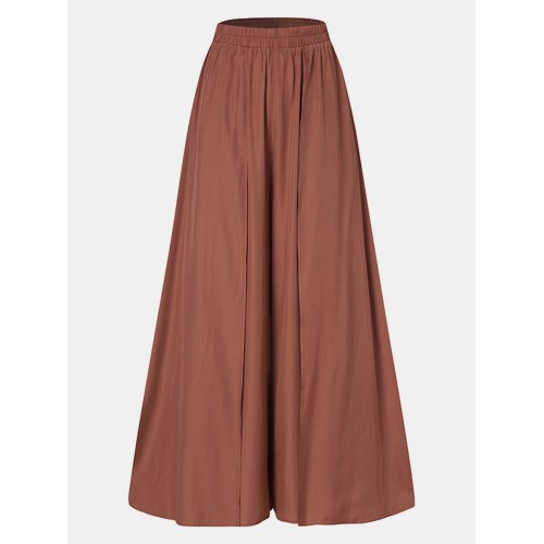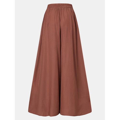 Women Solid Color Elastic Waist Loose Casual Wide Leg Pants With Pockets