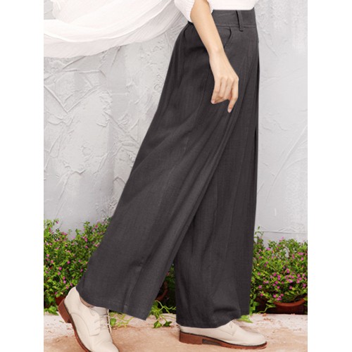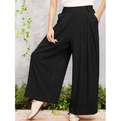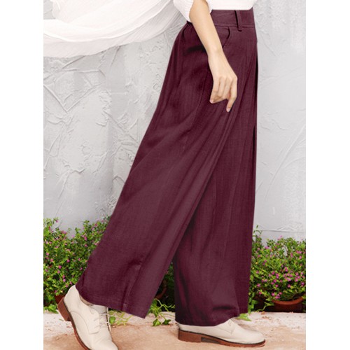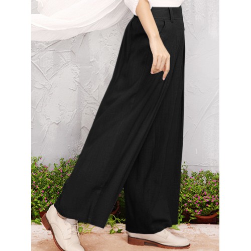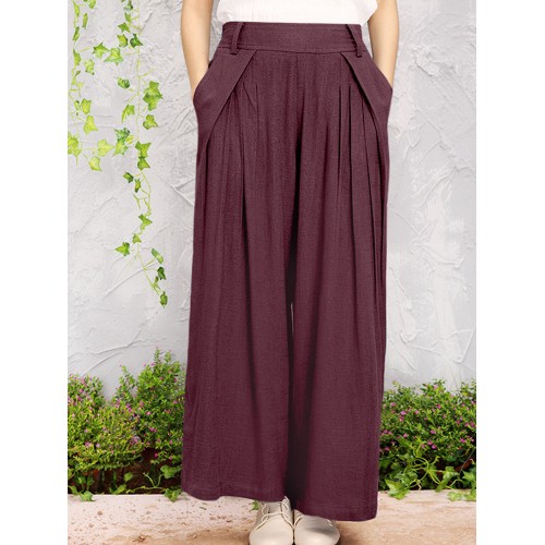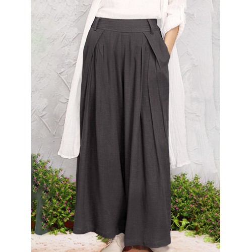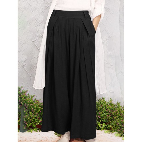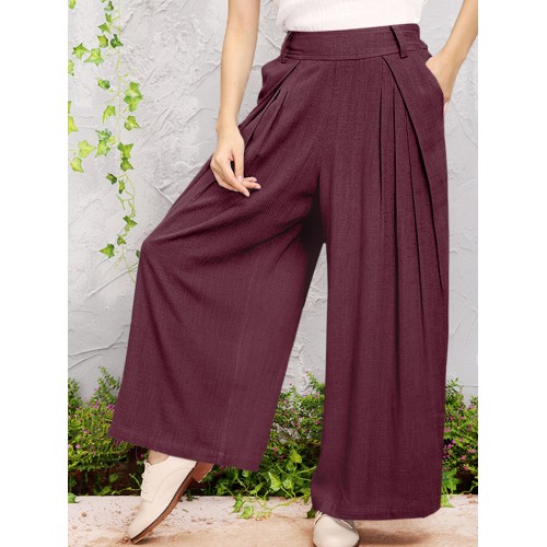 Wide legged Elastic Waist Solid Color Pants With Side Pockets